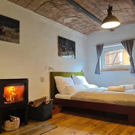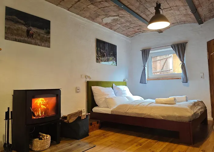 En séjournant au Gastesuite Am Waldrand, Ausstieg Auf Zeit, les clients ont accès à une terrasse et un coin salon dotés d'une cheminée en pierre. Il y a 1 salle de bains avec une douche ouverte et des toilettes séparées. Un sèche-cheveux, des draps de bain et des pantoufles sont également accessibles.